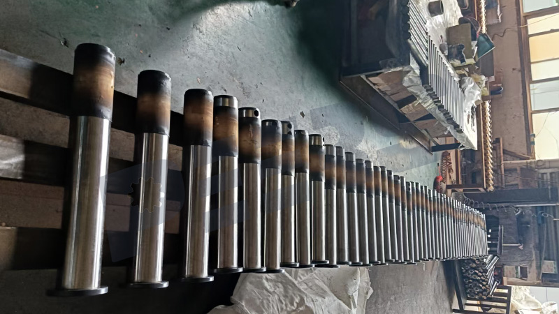 Bucket pins are usually made from high-strength alloy steel (45# 40Cr, 42CrMo) and experience heat treatment such as quenching and tempering to improve bucket pins hardness, wear resistance, and fatigue strength. Depending on the usage, they may also feature surface hardening or chrome plating to extend service life in harsh working environments like mining, or earthmoving.